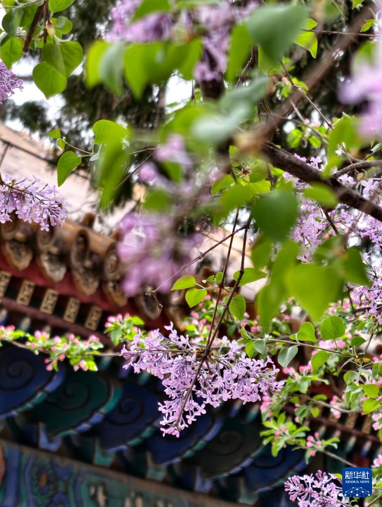 故宫慈宁宫花园内丁香开放(4月1日摄,手机照片)。