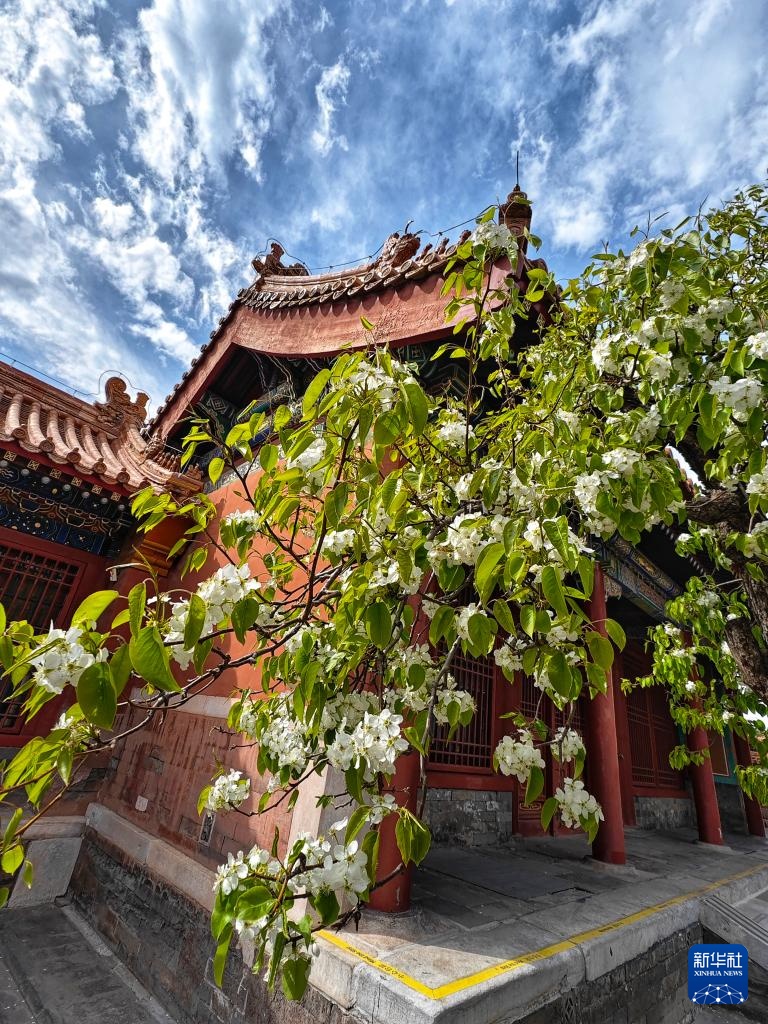 故宫寿康宫花园内梨花盛开(4月1日摄,手机照片)。