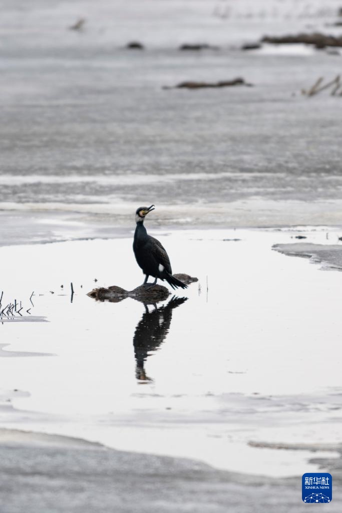 这是4月1日拍摄的兴凯湖国家级自然保护区内的普通鸬鹚。
