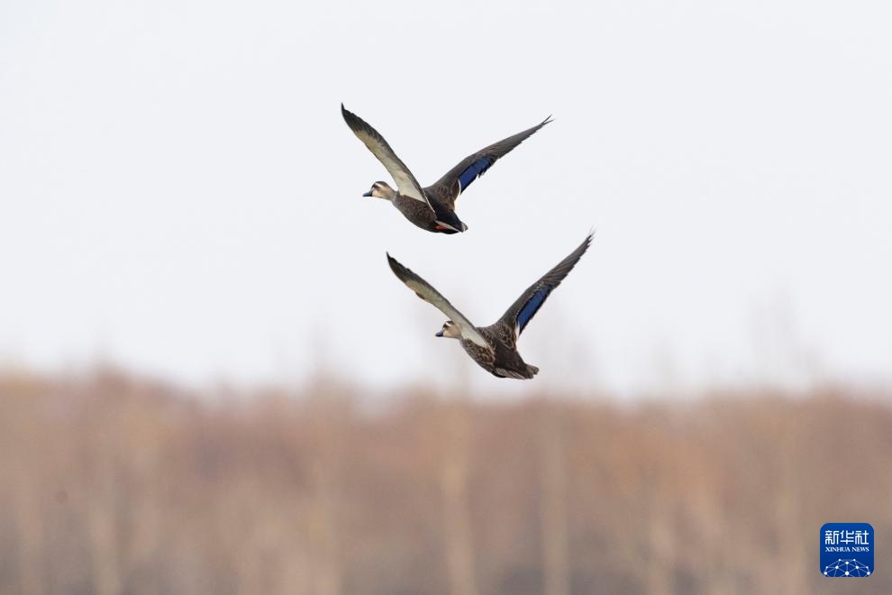 这是4月1日拍摄的兴凯湖国家级自然保护区内的斑嘴鸭。