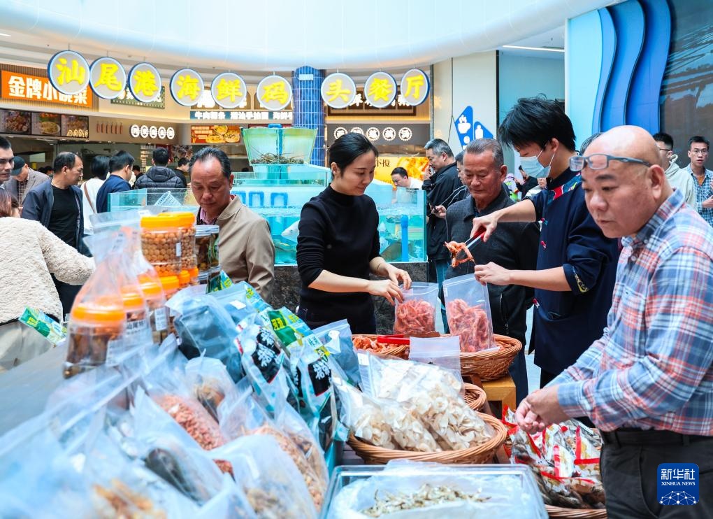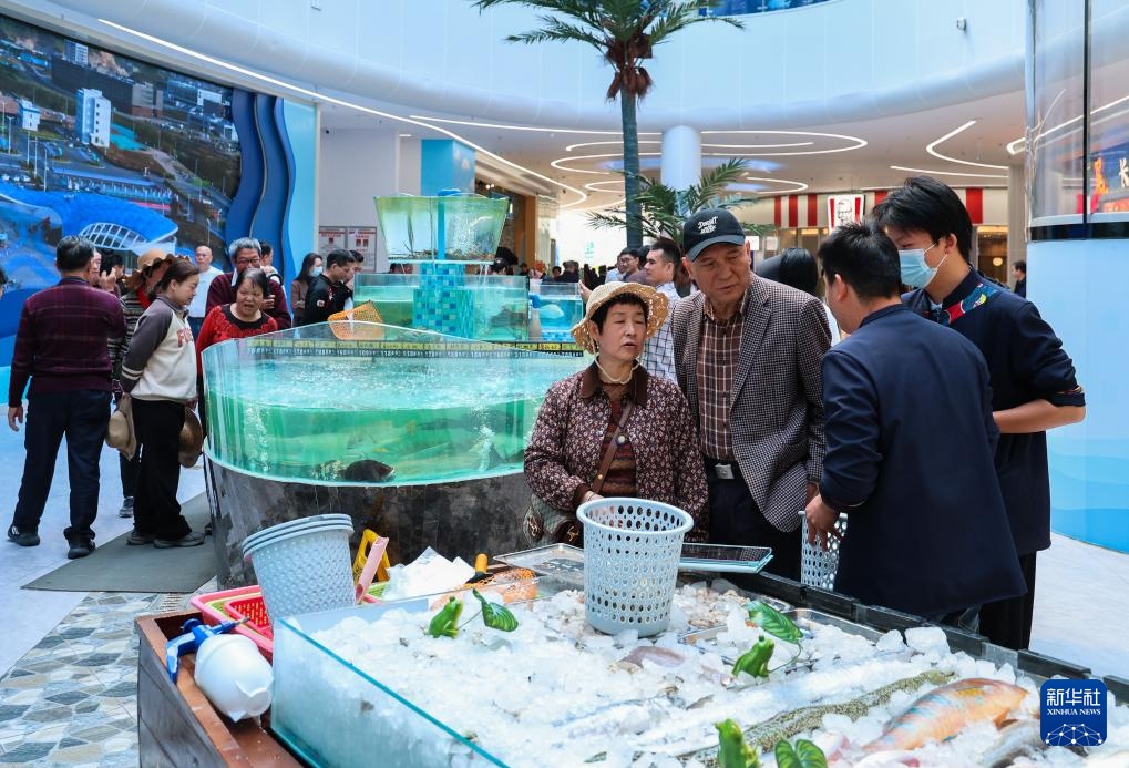 4月2日,旅客在深汕西高速长沙湾服务区餐厅选购汕尾海鲜。