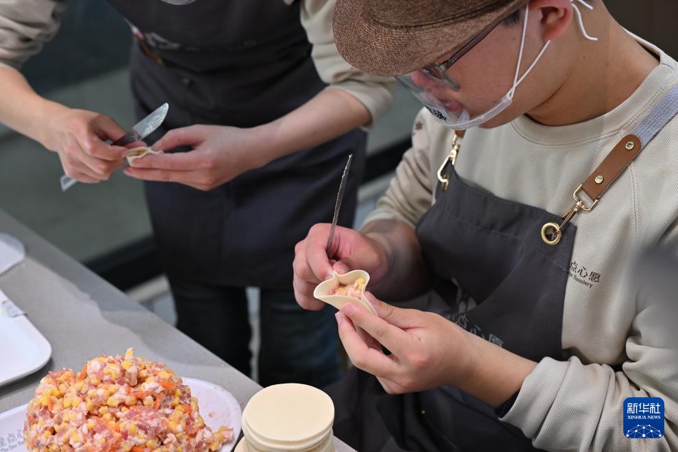 4月1日,“星青年”员工在“星点心愿”——支持孤独症青年工作公益店内包饺子。