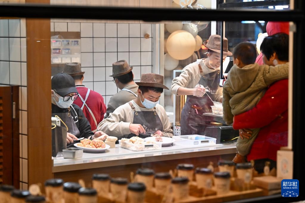 4月2日,市民在“星点心愿”——支持孤独症青年工作公益店内排队购买饺子。