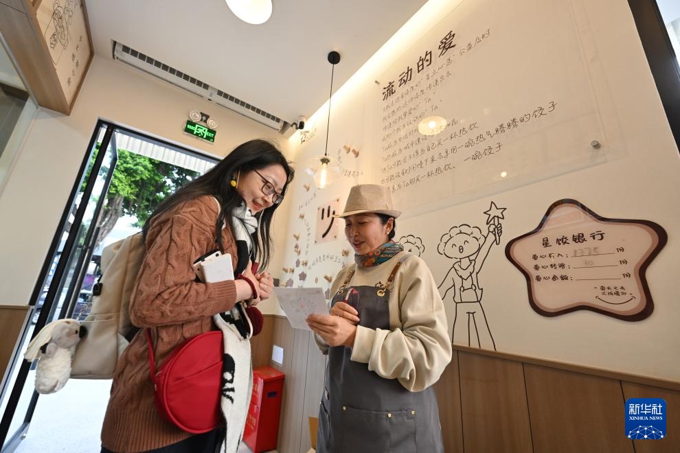 4月2日“世界孤独症日”,一个75平方米主营手作饺子的“星点心愿”——支持孤独症青年工作公益店在福建省福州市杨桥中路旁正式营业。店里共有11名孤独症青年员工,年龄最小的16岁,最大的38岁。走进这处爱心空间,馅料饱满的手作饺子、清香四溢的茶饮,均出自“星青年”之手。店里的墙上贴满了“星青年”创作的画作和拍摄的照片,一旁几只毛茸茸的小熊玩偶供紧张时舒缓情绪。餐桌上标签写着“星青年”与其家人的“星点心愿”:“面皮包裹鲜香,也包裹Ta们想被理解与支持的渴望,出锅的滚滚热气,更像是Ta们走向社会的勇气。咬出半个月亮,溢出满勺星光,每一口都是希望。我们各不相同,却是彼此的彩虹。很期待与你再相遇……”