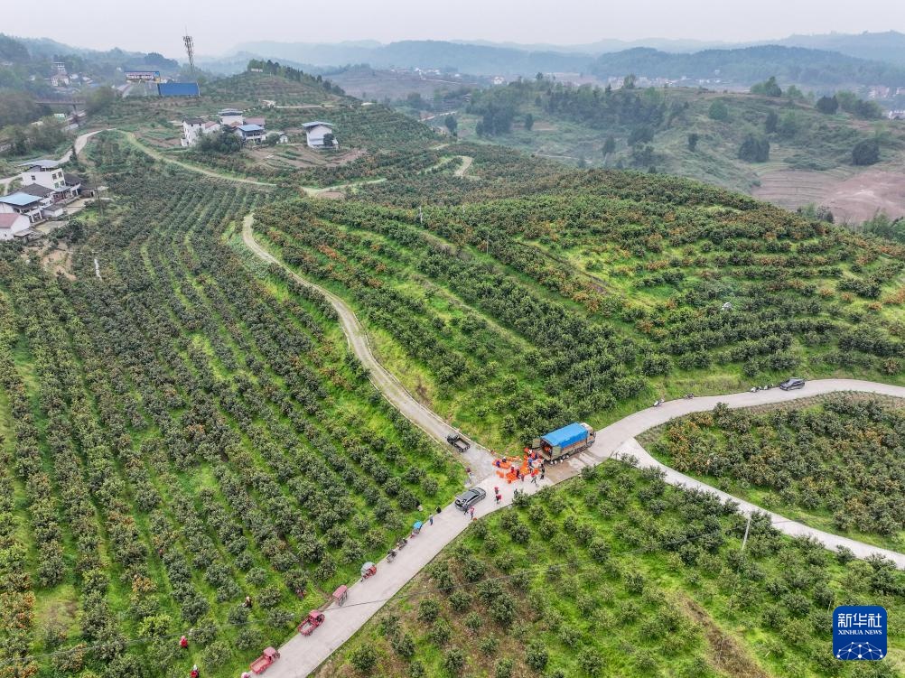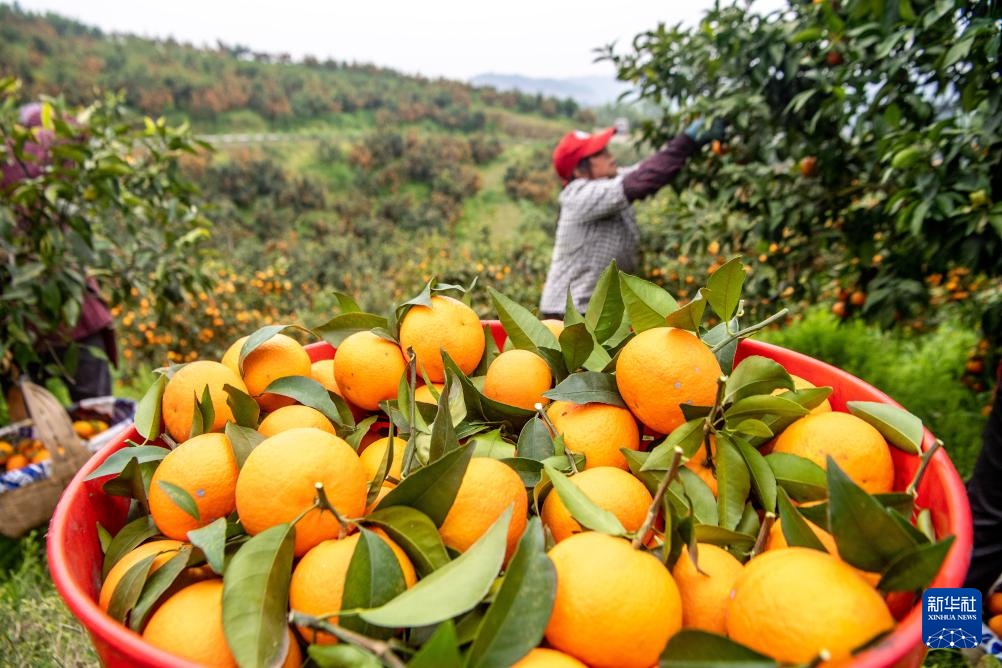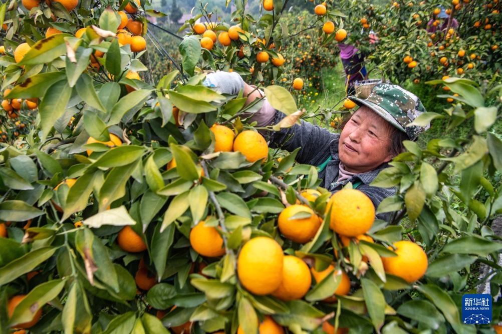 眼下,重庆市石柱县王场镇万亩晚熟柑橘迎来丰收季,当地农民抢抓农时采摘柑橘,一派繁忙景象。
