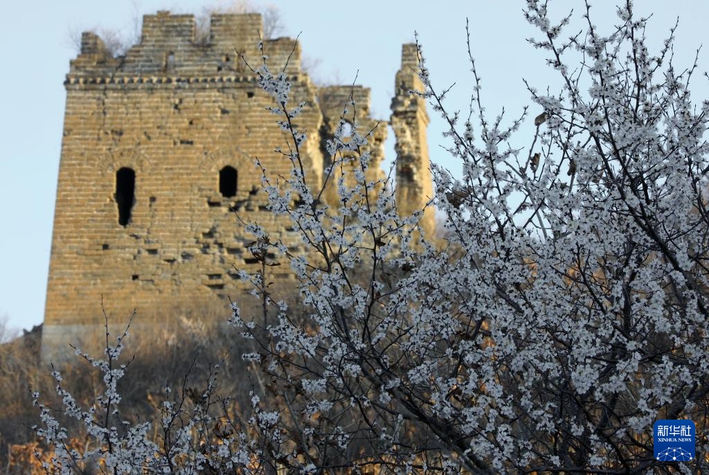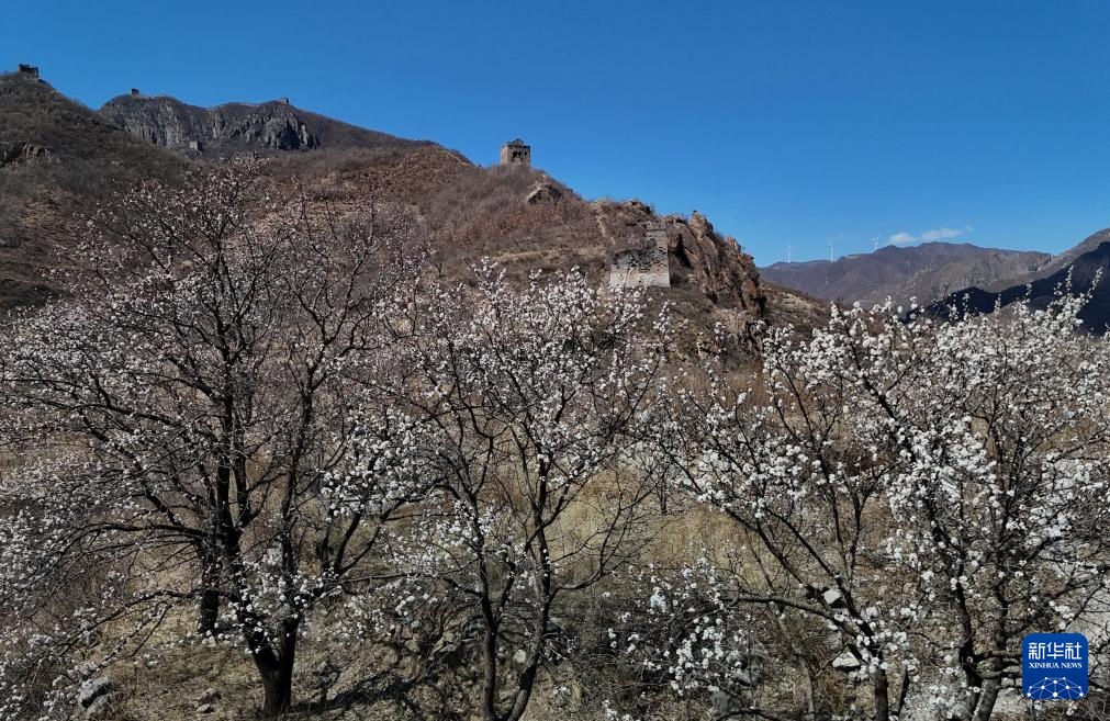 近日,河北省秦皇岛市海港区长城两侧的杏花相继开放,勾勒出一幅充满诗情画意的春日画卷。
