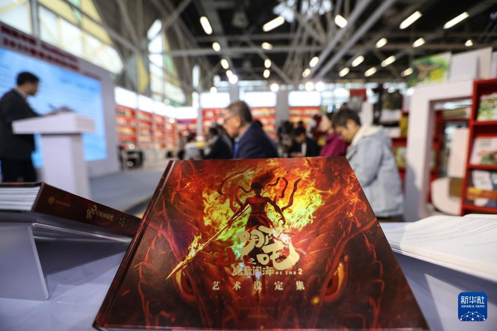 这是4月1日在意大利博洛尼亚举行的第62届博洛尼亚童书展中国展区拍摄的《哪吒》主题图书。