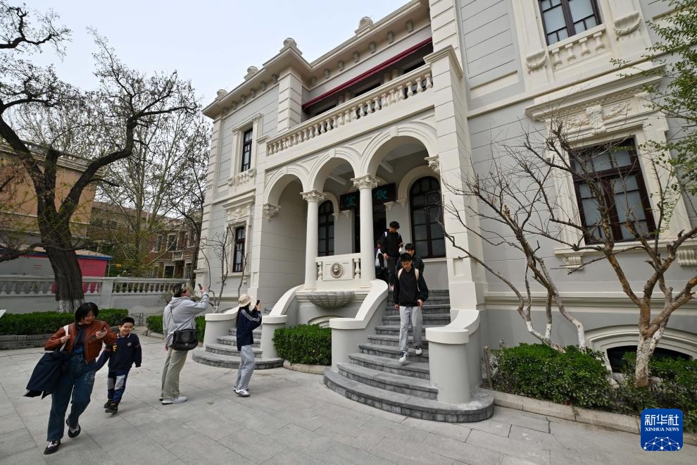 4月4日,讲解员在天津梁启超纪念馆“饮冰室”书斋内为游客提供免费讲解服务。