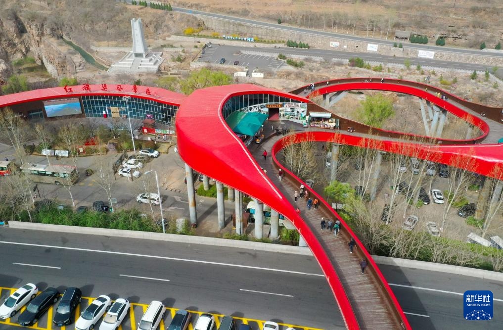 3月25日,游客在河南省林州市红旗渠风景区参观游玩(无人机照片)。