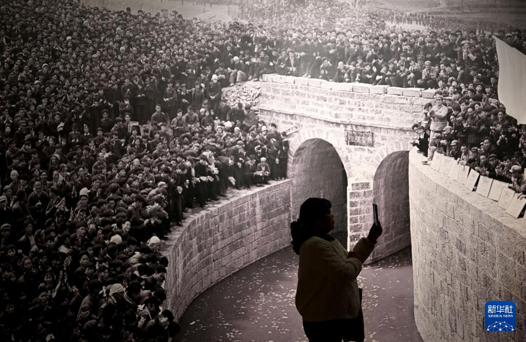 3月18日,一名游客在红旗渠纪念馆参观时拍摄。