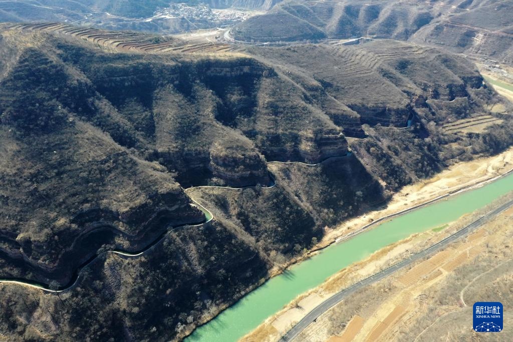 这是3月25日在河南省林州市任村镇阳耳庄村附近拍摄的红旗渠总干渠(无人机照片)。