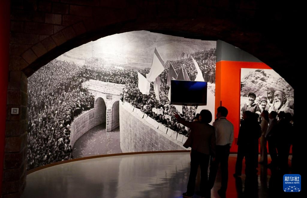游客在河南省林州市红旗渠纪念馆参观(2023年4月27日摄)。
