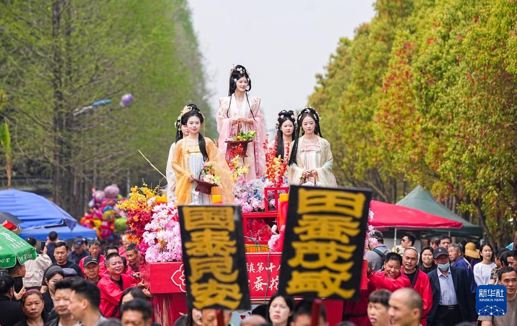 这是洲泉镇2025春季“双庙渚蚕花水会”上举行的蚕花巡游活动(4月4日摄)。