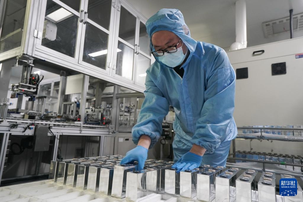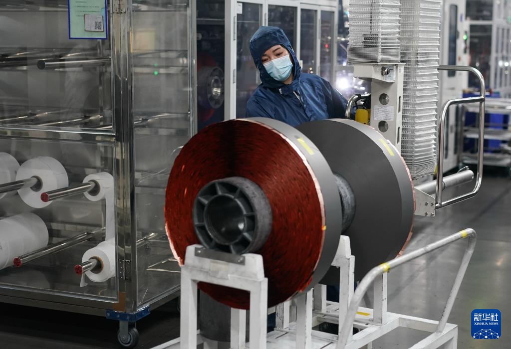4月5日,工人在双登集团股份有限公司锂电池生产车间作业。