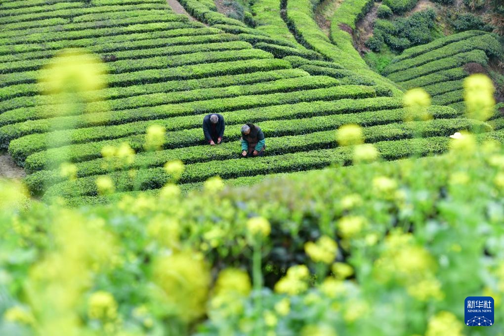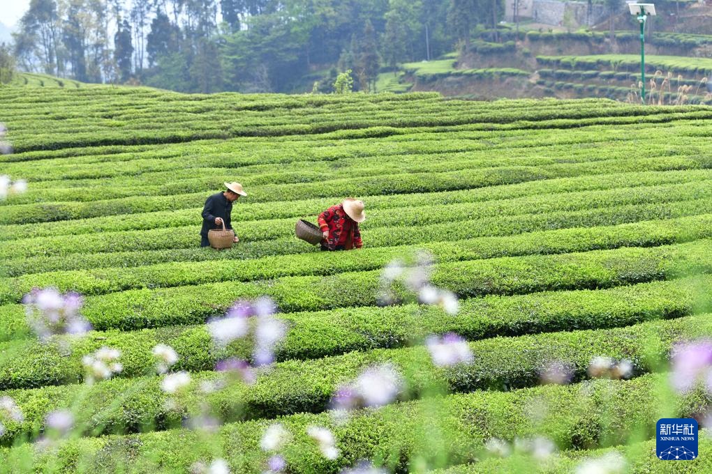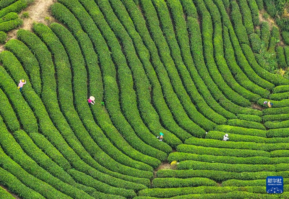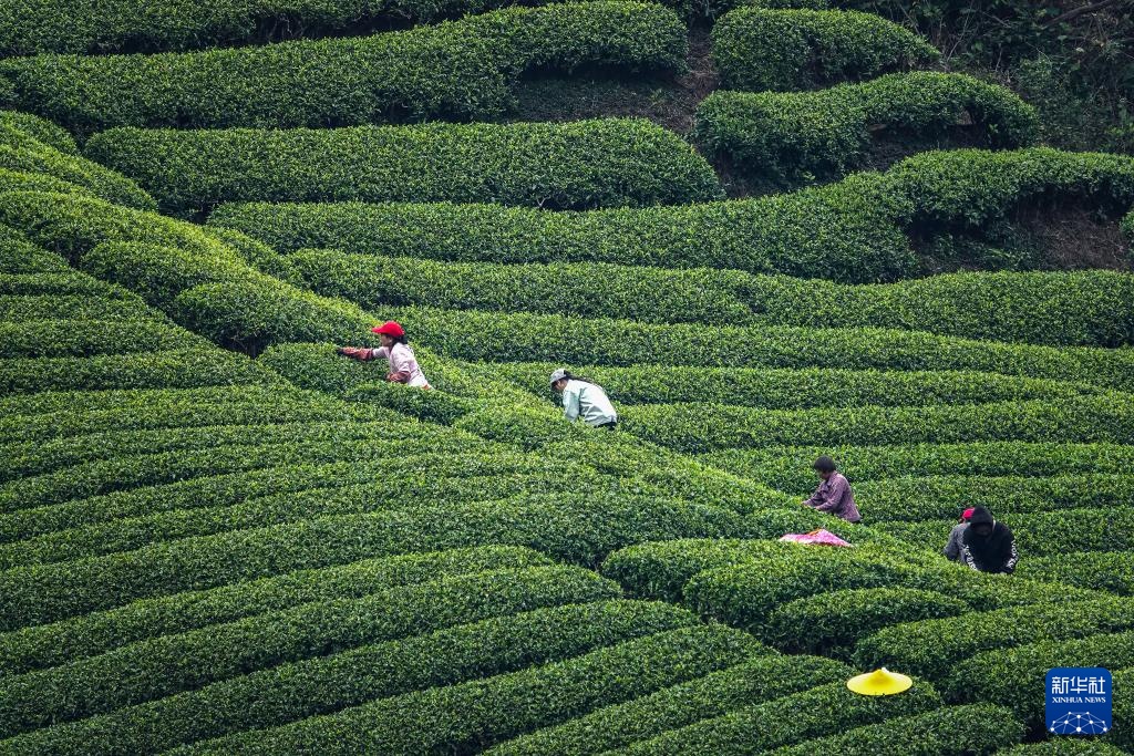 清明时节是春茶采摘旺季,茶农在茶园内忙碌,采制新茶供应市场。