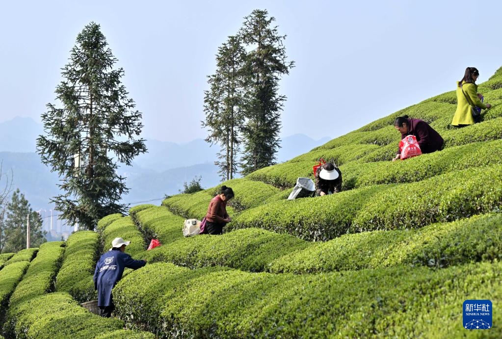 4月4日,茶农在湖北省宜昌市秭归县茅坪镇长岭村一家茶园采茶。