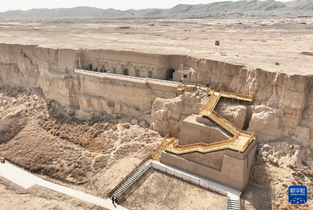 这是4月5日拍摄的新疆吐鲁番雅尔湖石窟(无人机照片)。