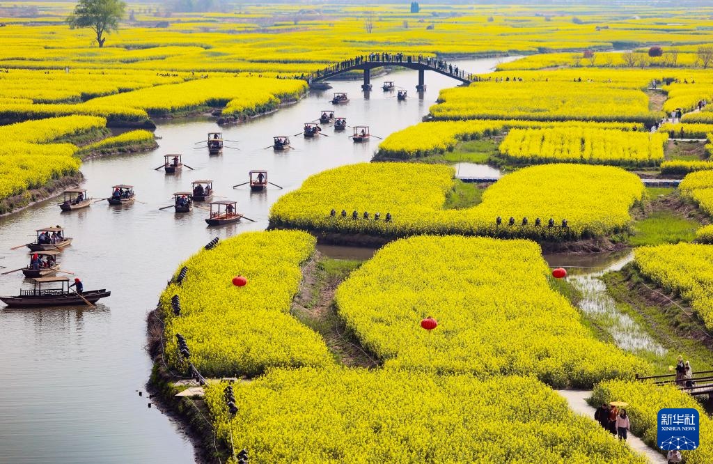 清明时节,江苏省兴化市千垛景区的油菜花进入盛花期,金黄色的油菜花与纵横交错的河道构成“河有万湾多碧水,田无一垛不黄花”的春日画卷,吸引游客前来踏青赏花。