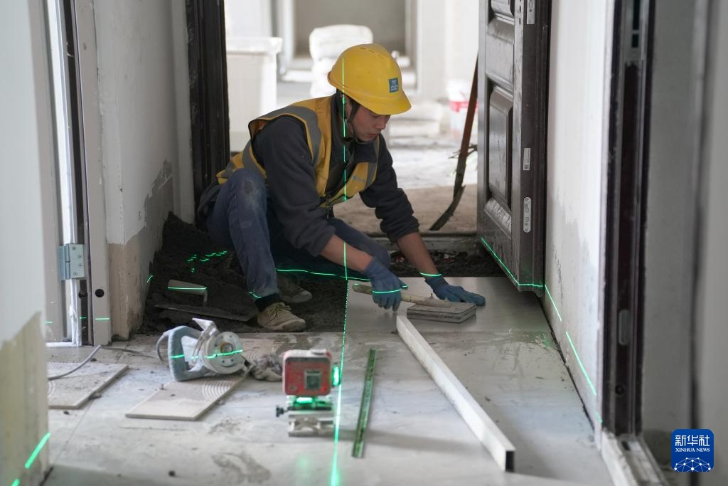 4月7日,施工人员在中建安装华西公司承建的鱼化嘉苑项目室内进行装修工作。