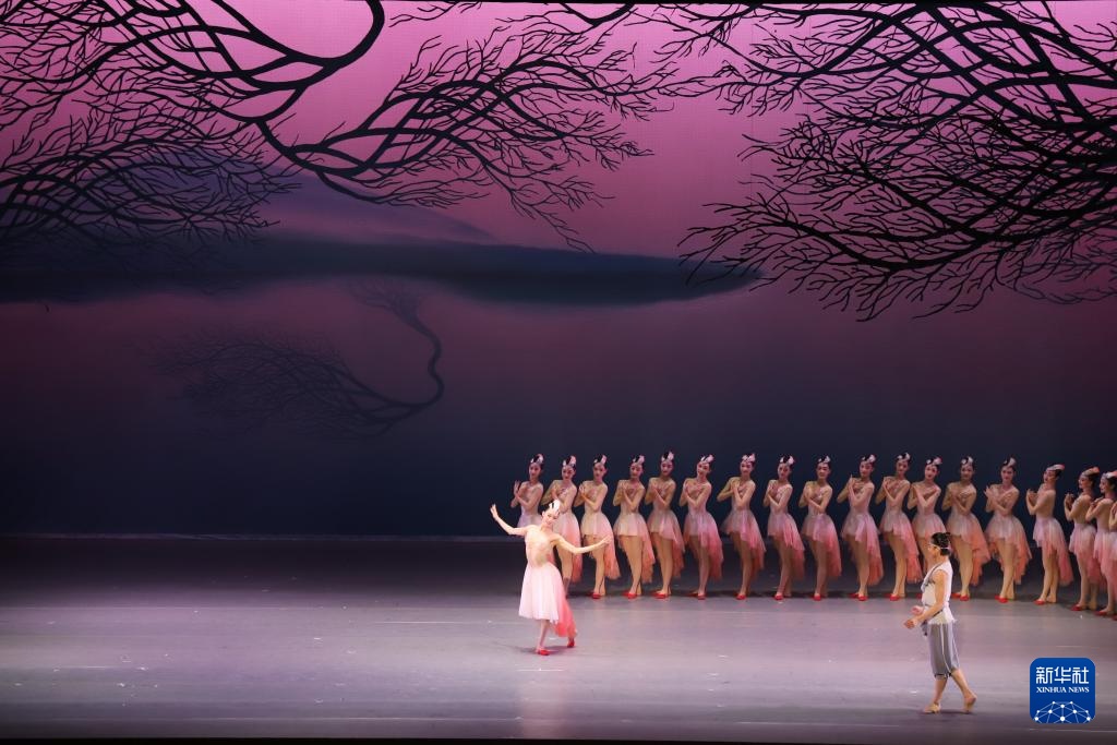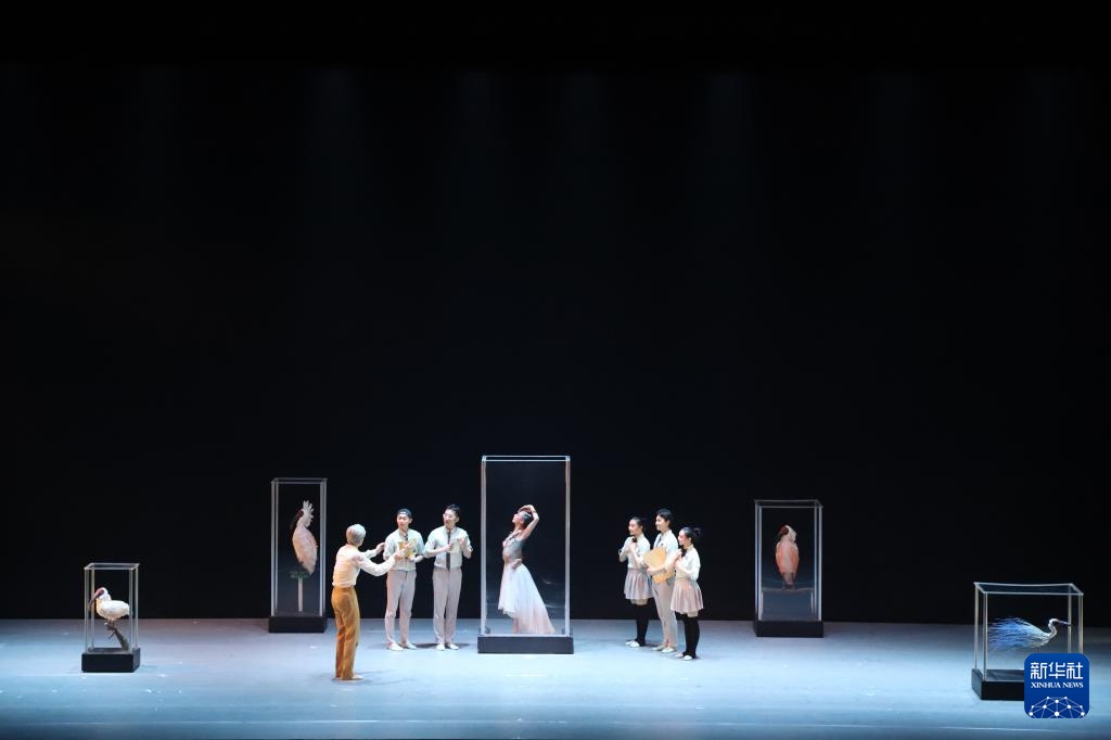 4月6日,中国上海歌舞团演员在日本新潟表演舞剧《朱鹮》。