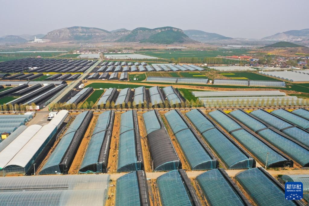 这是4月8日拍摄的东平县梯门镇农业大棚(无人机照片)。