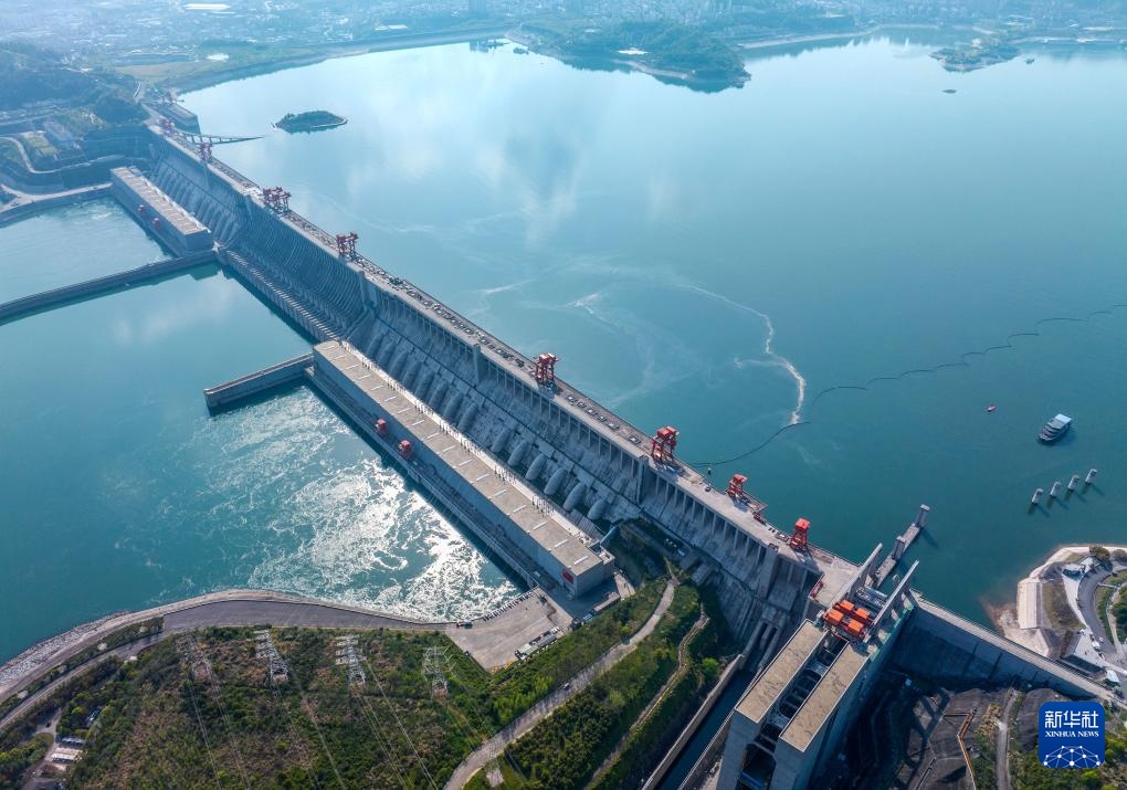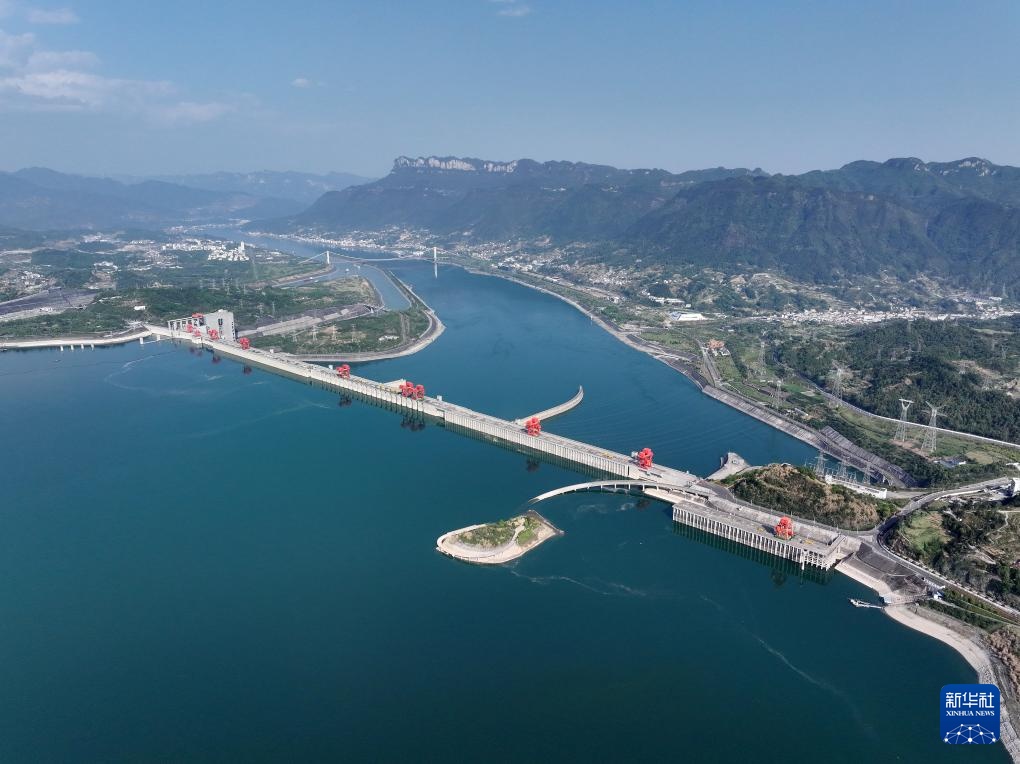 4月8日在湖北省宜昌市秭归县拍摄的三峡大坝(无人机照片)。
