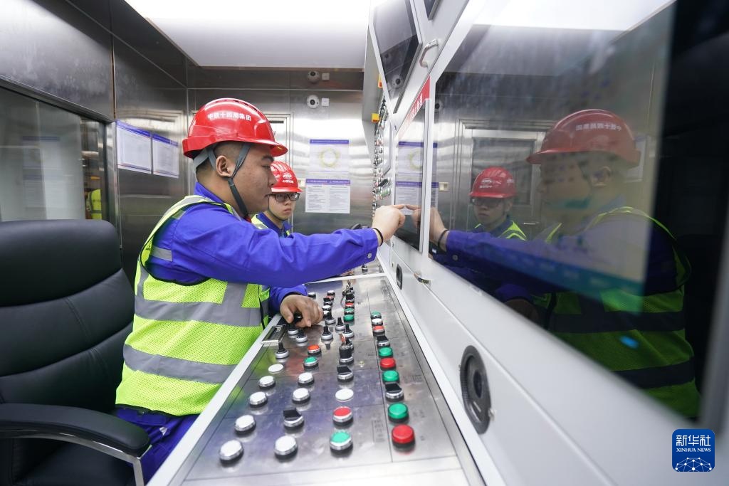 4月9日,中铁十四局技术人员在盾构机操作室内工作。