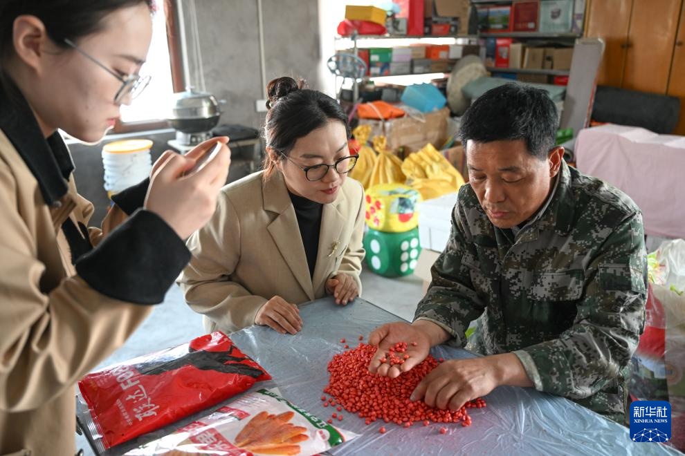 4月11日,在内蒙古兴安盟科右中旗巴彦呼舒镇浩特化嘎查一户村民家中,乡镇干部在为“村闻联播”拍摄素材。