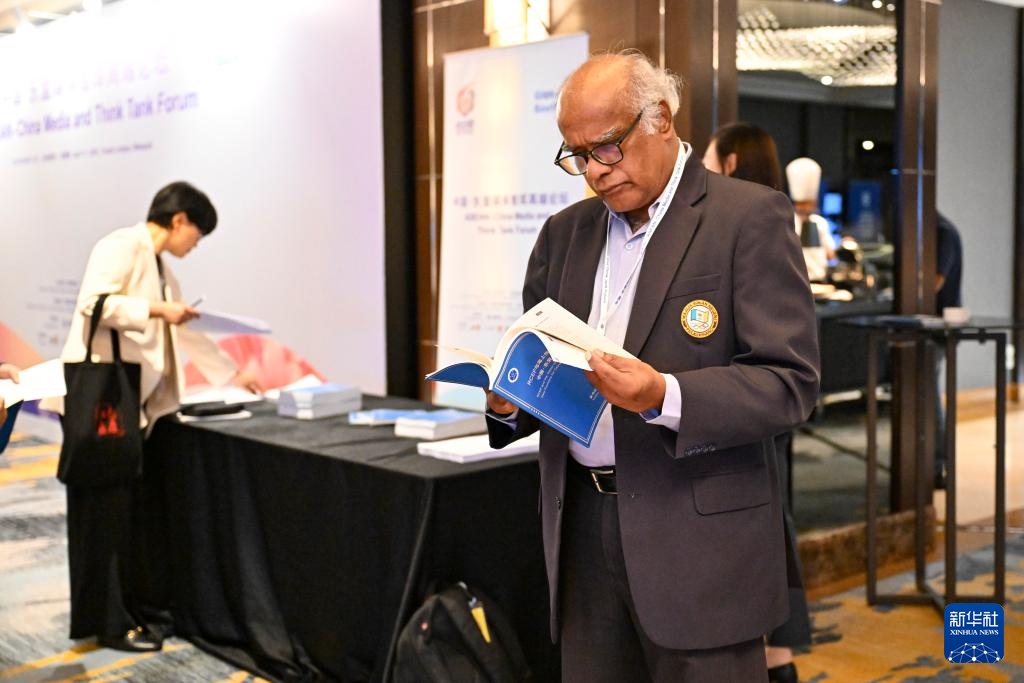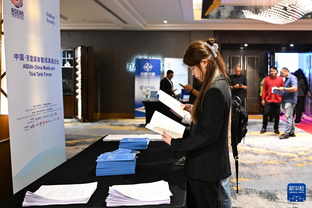 4月11日,在马来西亚吉隆坡,与会嘉宾阅读《RCEP与海上丝绸之路愿景:中国-东盟合作新空间》智库报告。