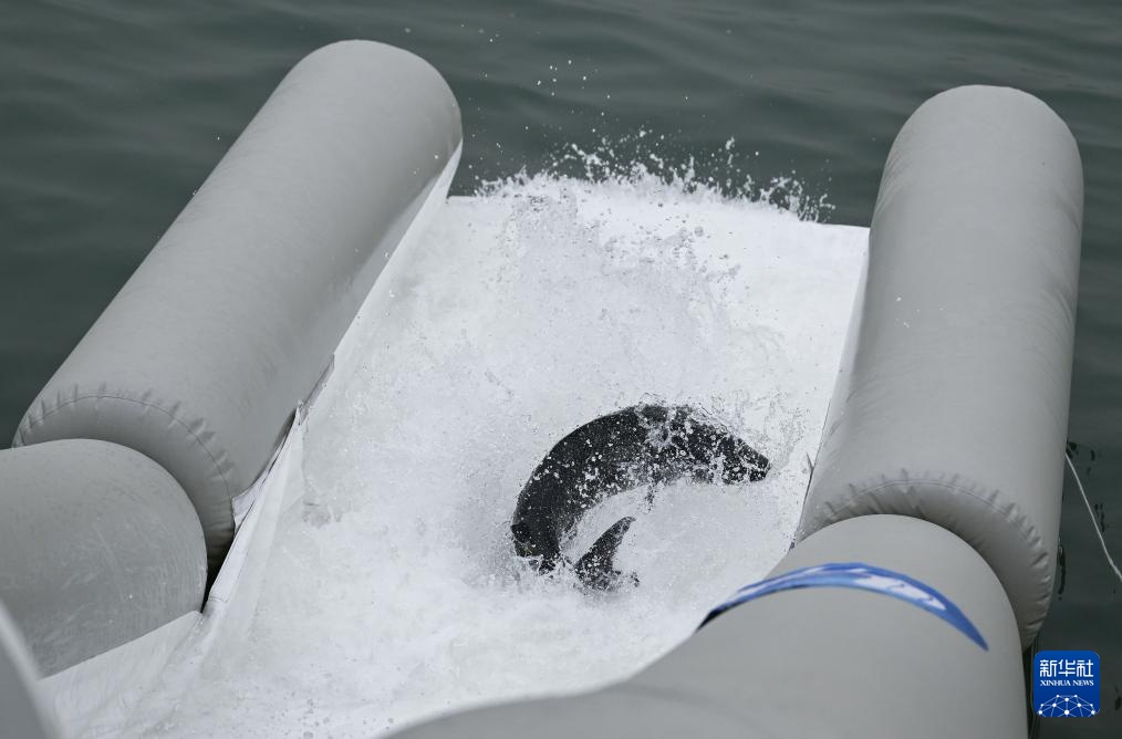 4月12日,中华鲟从放流通道滑入长江。