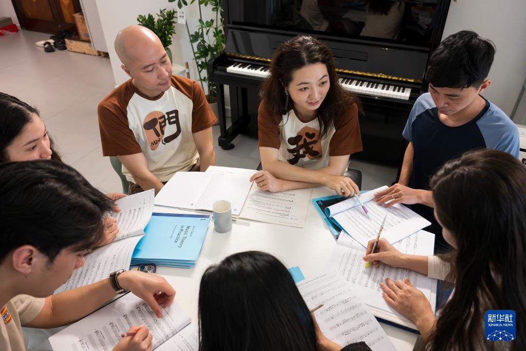 3月28日,童光荣与莫双双在位于越南首都河内的家中教授“新活力”乐团成员乐理知识。