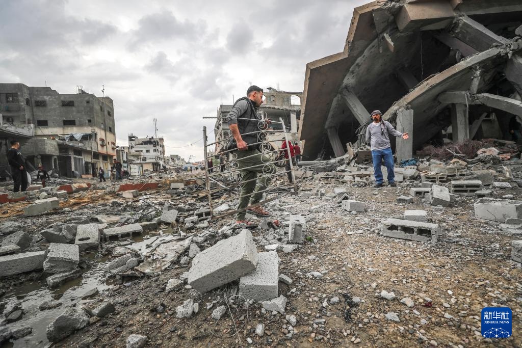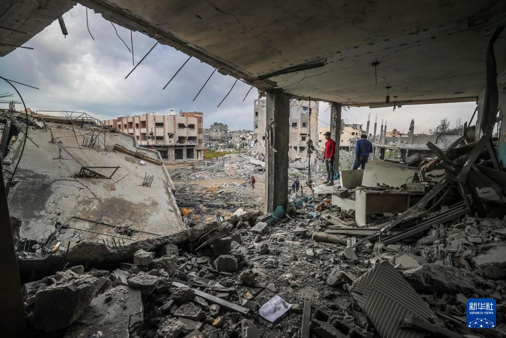 4月12日,在加沙地带北部的杰巴利耶难民营,民众查看以军袭击后的废墟。