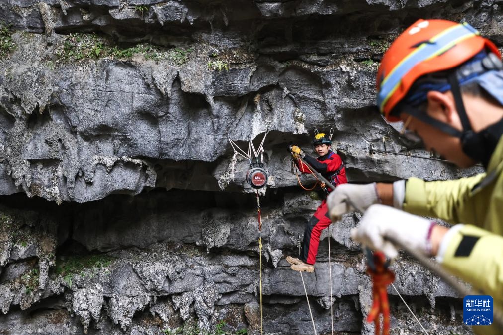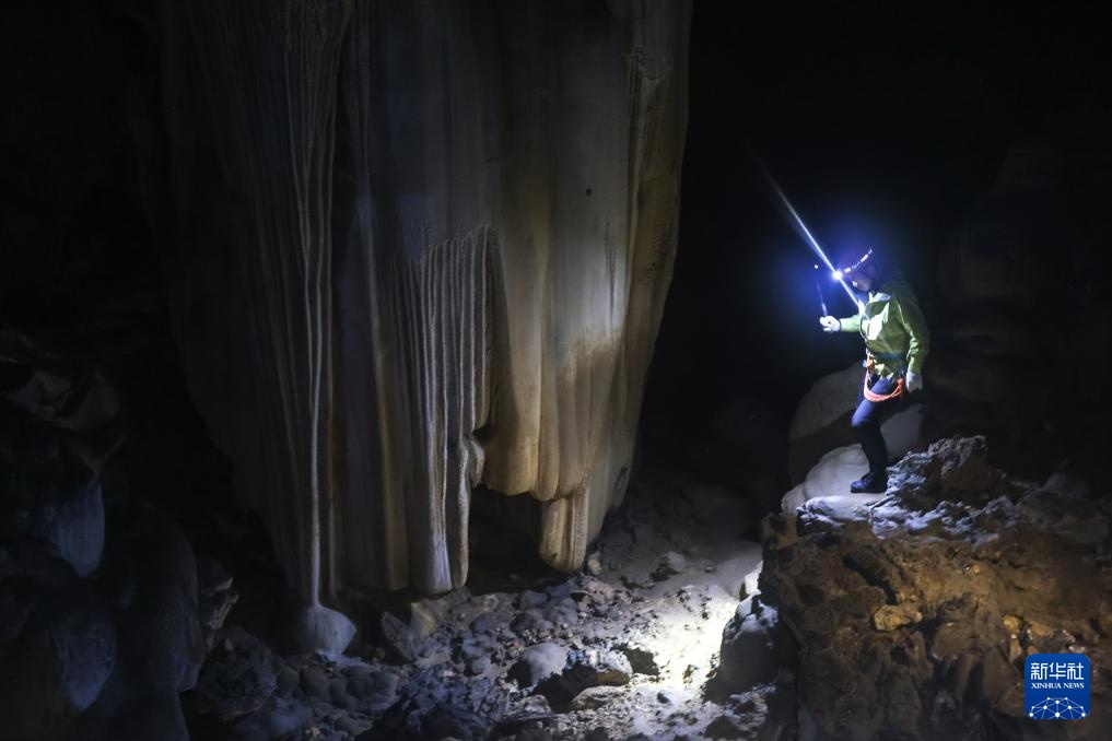 游客在平塘县“平塘天硐”体验洞穴旅游(2月19日摄)。
