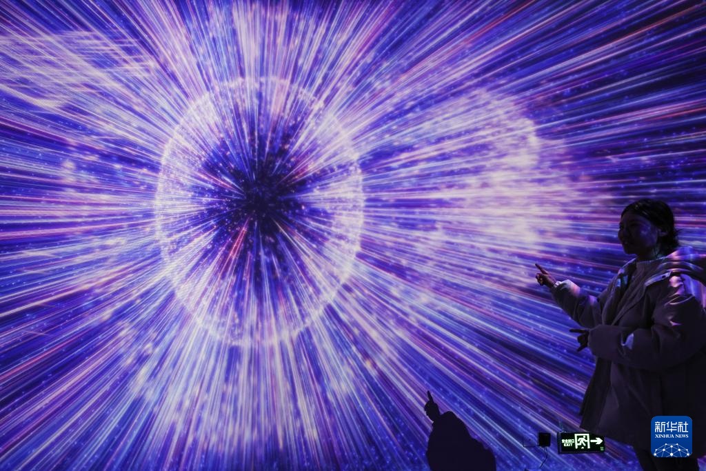 游客在平塘县“天文小镇”的星游记·VR馆内参观(2月18日摄)。