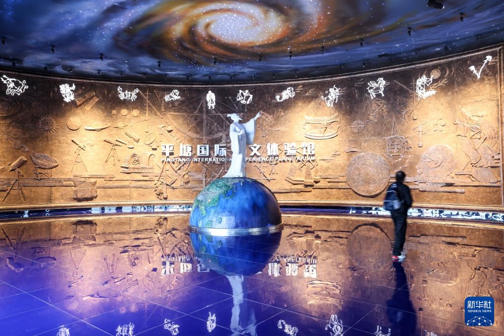 游客在平塘县“天文小镇”的天文体验馆内参观(2月18日摄)。