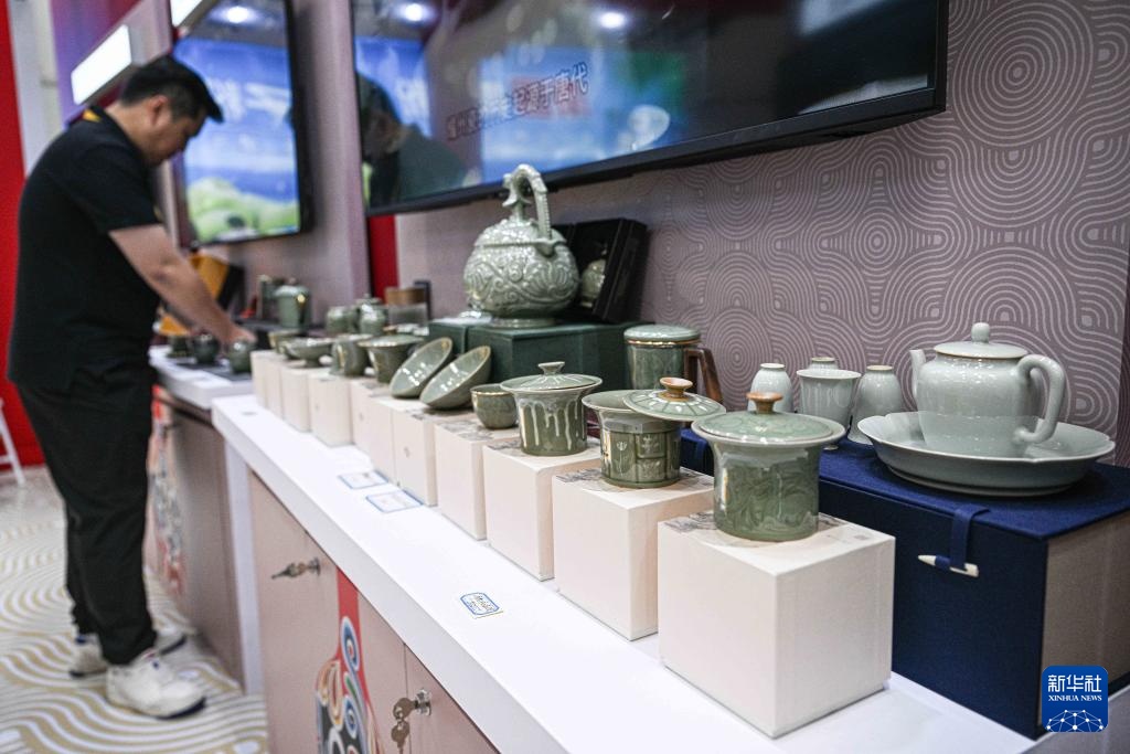 4月15日在第五届消博会陕西馆拍摄的耀州窑瓷器。耀州窑陶瓷烧制技艺是国家级非物质文化遗产。