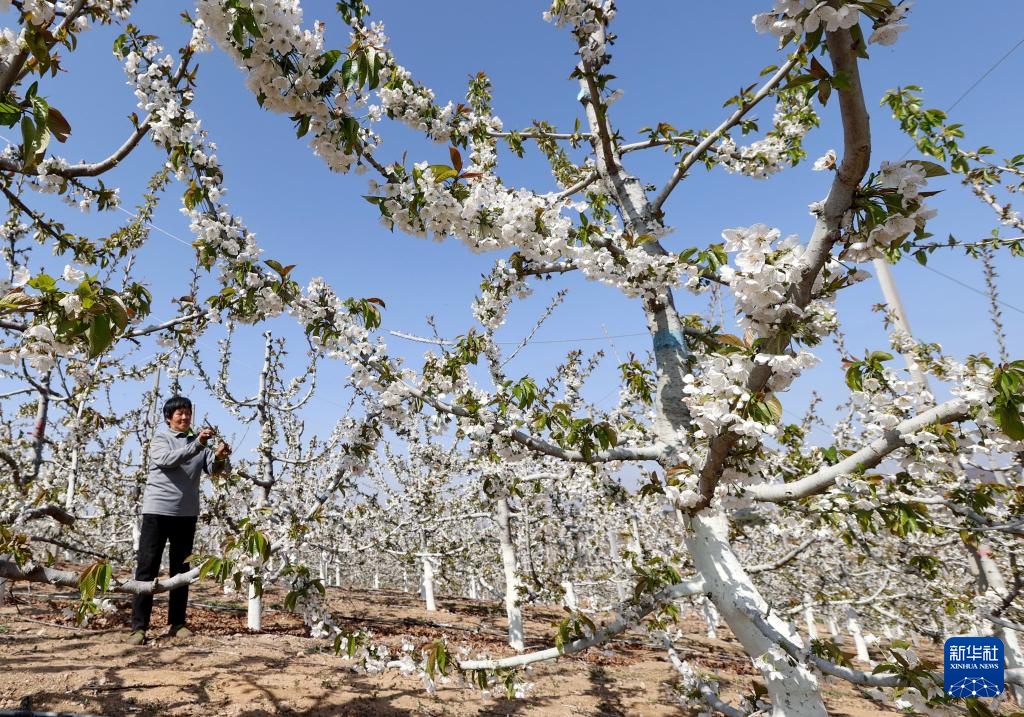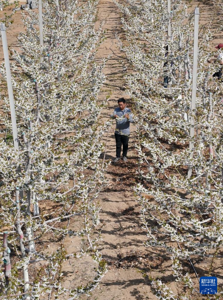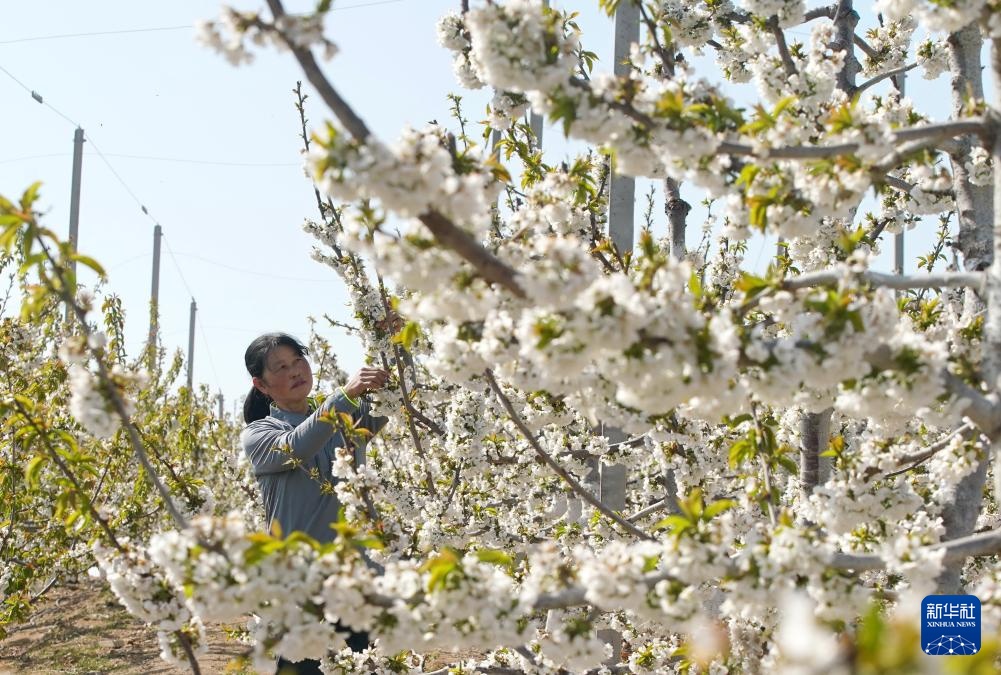 近日,河北省秦皇岛市山海关区的3万多亩樱桃花开始绽放,农民置身花海中进行田间管理,构成一幅美丽的乡村画卷。
