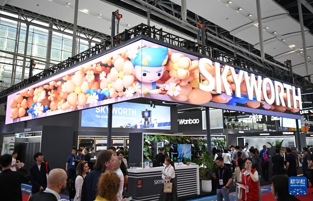 这是4月15日拍摄的第137届广交会智慧生活专区的创维展台。