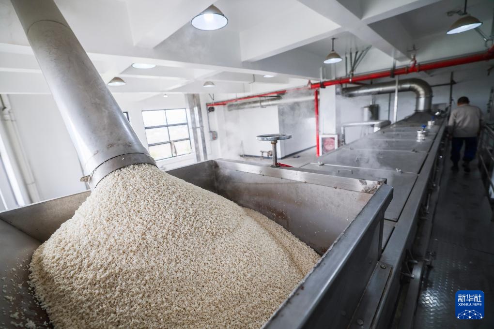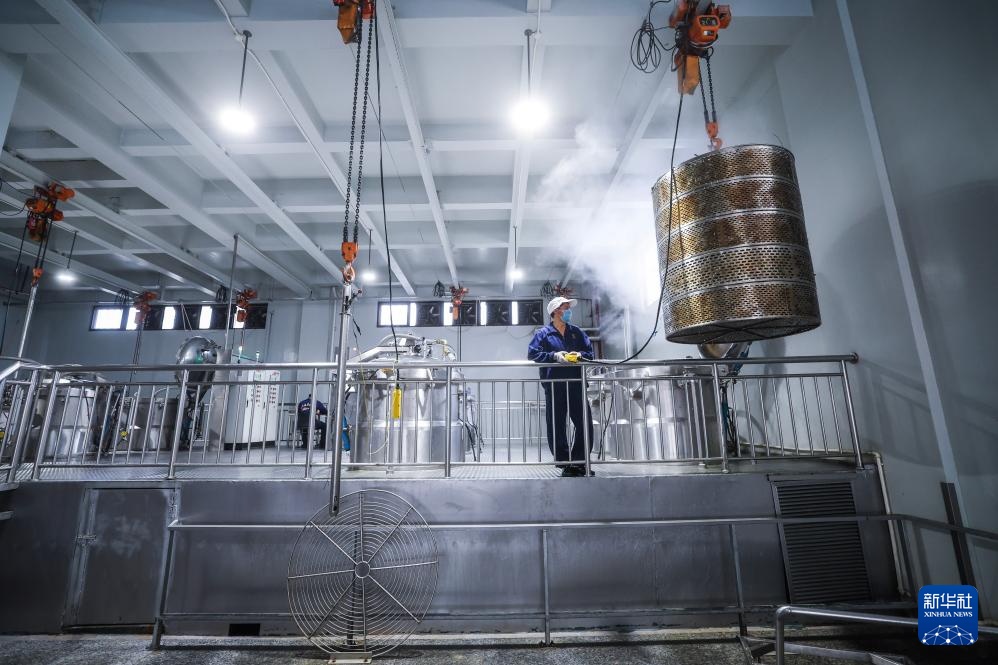 4月16日,在位于嘉兴南湖区湘家荡农业加工园的老字号企业嘉兴酒厂的车间内,自动化蒸米设备在蒸米,为酿酒做准备。