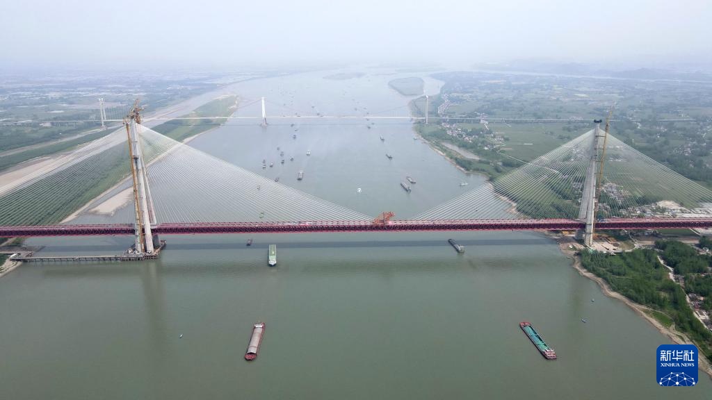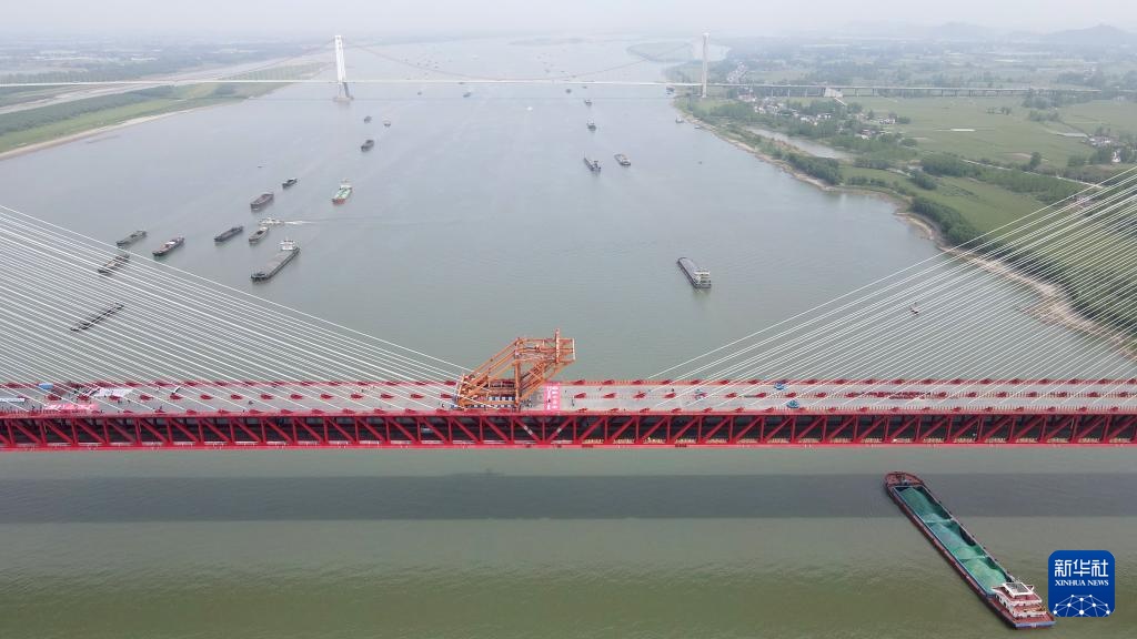 这是合龙后的巢马城际铁路马鞍山长江公铁大桥主汊航道桥(4月17日摄,无人机照片)。