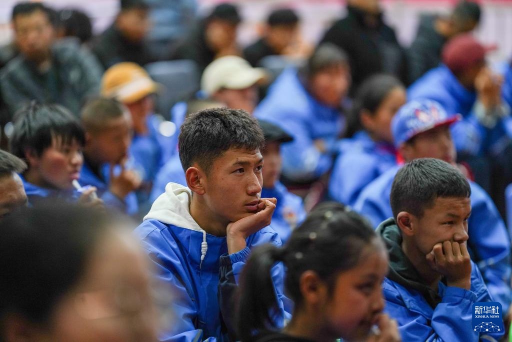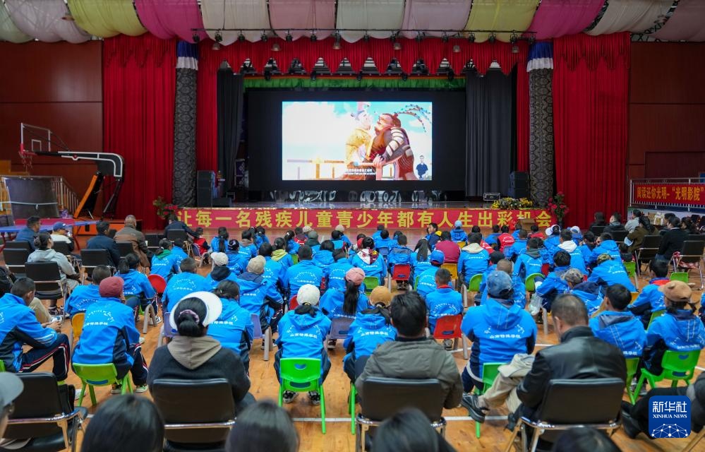 4月17日,西藏山南市特殊教育学校师生观看无障碍电影《神笔马良》。