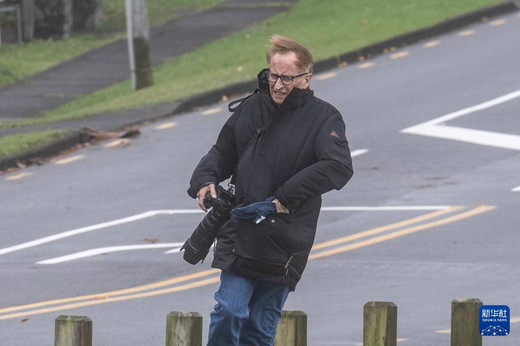 4月17日,一位摄影师在新西兰奥克兰街头拍摄。