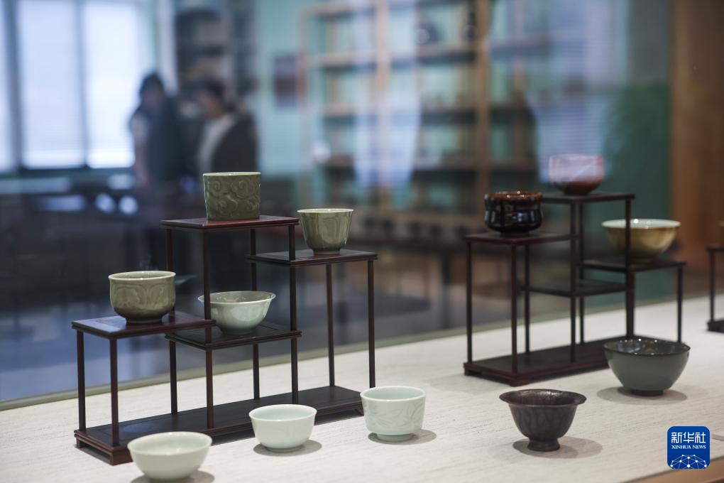4月19日拍摄的金华武义溪里村的婺州窑艺术馆展示的各类婺州窑器具。