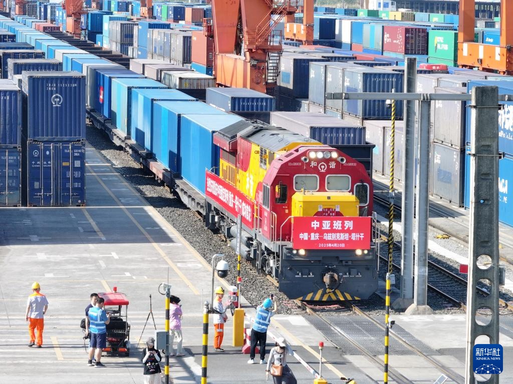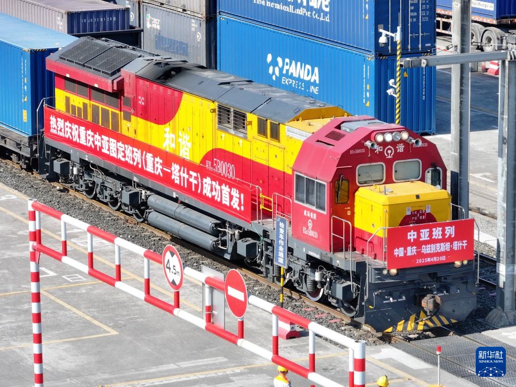 4月20日上午,一列满载“重庆造”聚酯切片的中亚班列,从重庆团结村中心站缓缓驶出,这是重庆首次开行图定中亚班列,此后将以每月2列的固定频次实现常态化开行。