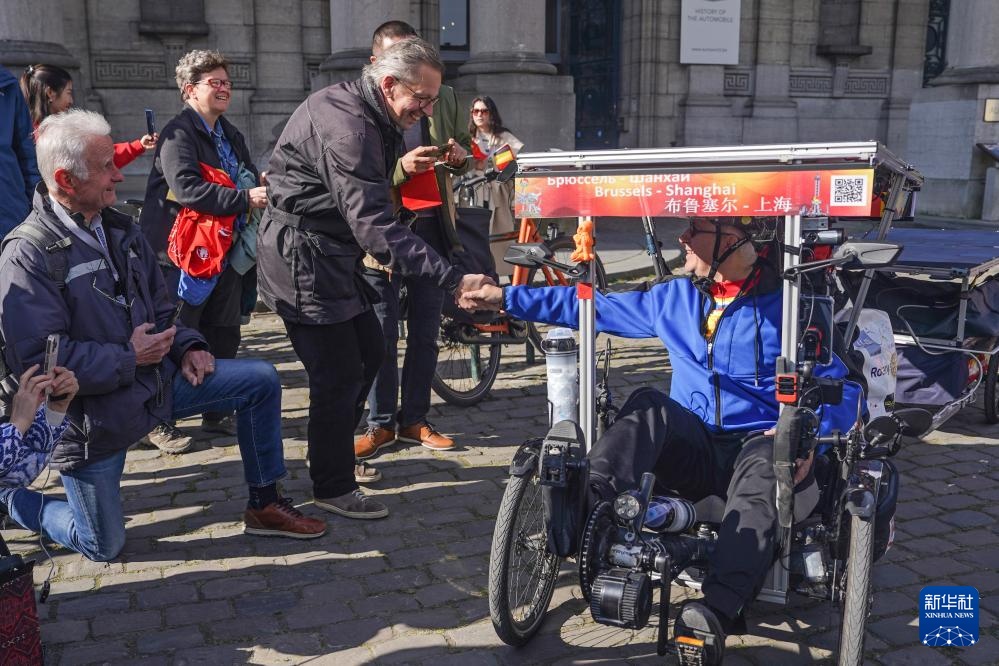 年逾六旬的比利时骑行爱好者克劳德·布鲁尔4月19日上午从布鲁塞尔启程,踏上“骑向上海”绿色远程骑行之旅。布鲁尔此行使用自己组装的太阳能助力三轮车,整个行程预计历时4个多月。
