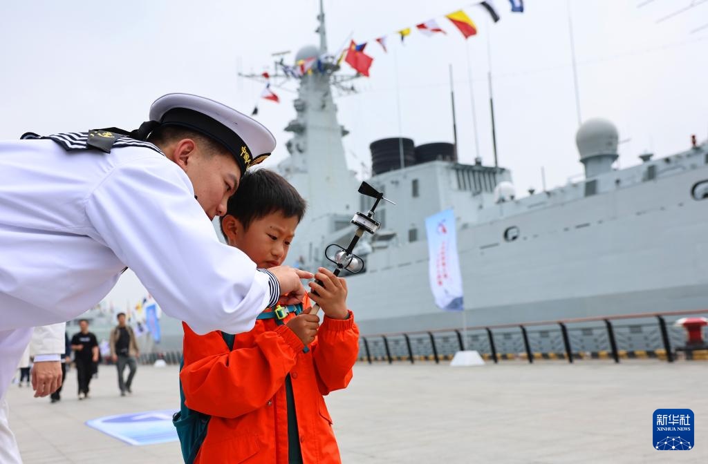 当日,在人民海军成立76周年之际,驻沪海军部队联合上海市双拥办共同组织以“上海·海上”为主题的舰艇开放活动。两艘海军现役主战舰艇综合登陆舰沂蒙山舰和导弹驱逐舰西安舰靠泊上海港国际客运中心码头,市民游客不仅能够登舰参观,还在现场观看和参与文艺表演和国防教育科普活动。