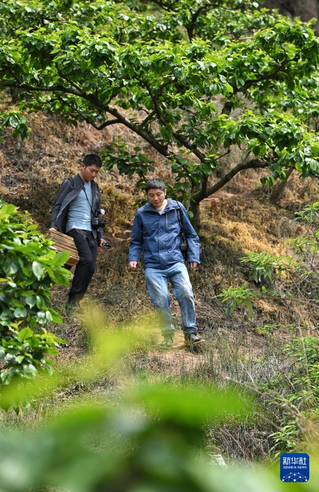 4月11日,胡君(右)、罗垚在野外科考。