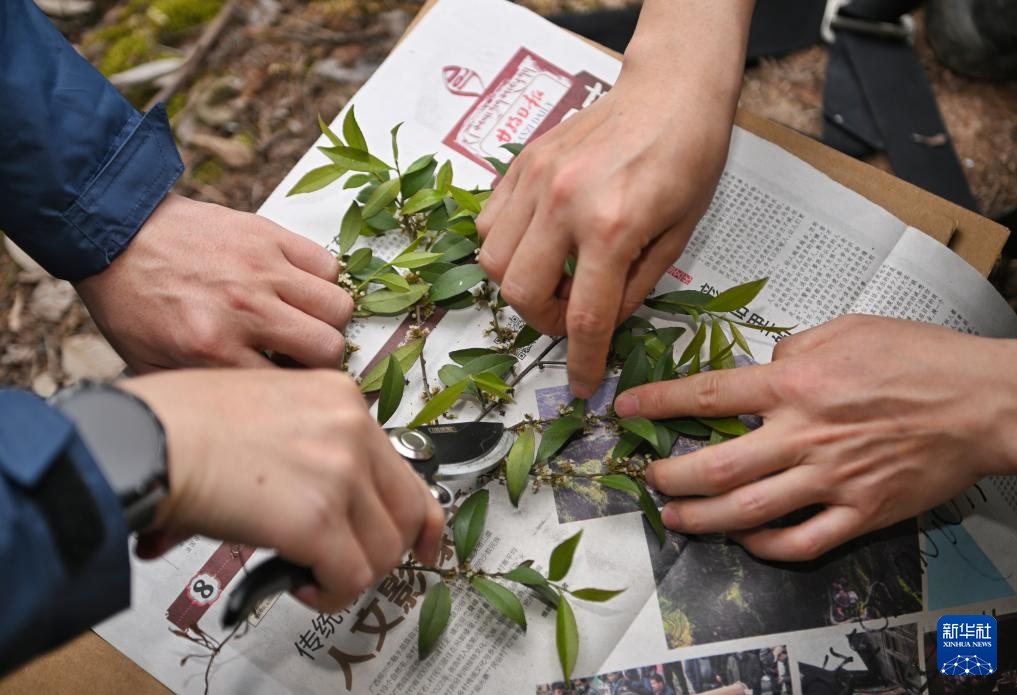 4月11日,胡君(左)、罗垚在野外采集植物标本。