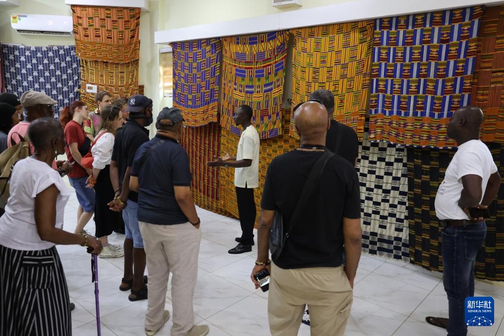 3月13日,在加纳阿散蒂省库马西市,游客在“肯特布”博物馆内参观。