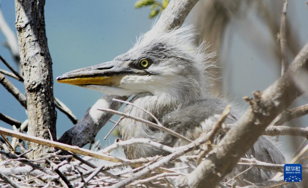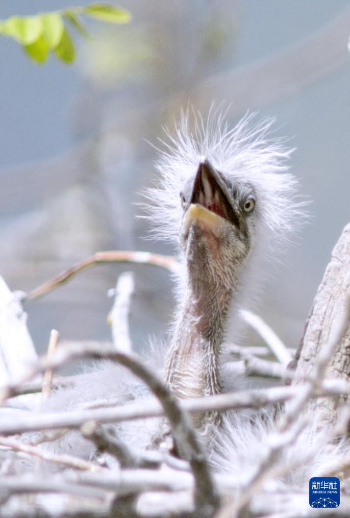 密云水库鸟岛上等待哺育的小苍鹭(4月23日摄)。
